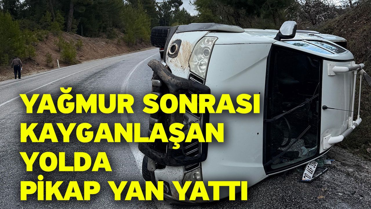 Denizli’de yağışlı hava nedeniyle kontrolden çıkan pikap yan yatarak durabildi. Kazada yaralanan sürücünün sağlık durumunun iyi olduğu öğrenildi.
