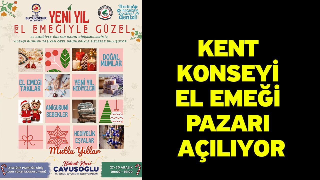 Denizli Haber - Denizli Büyükşehir Belediyesi Kent Konseyi El Emeği Pazarı yönetimi tarafından organize edilen etkinlikte, kadınların kendi emeklerini görünür kılması, girişimcilik becerilerini geliştirmesi ve dayanışmayı güçlendirmesi amacıyla, kadın girişimcilerin hazırladığı yılbaşı temalı ürünler satışa sunulacak.