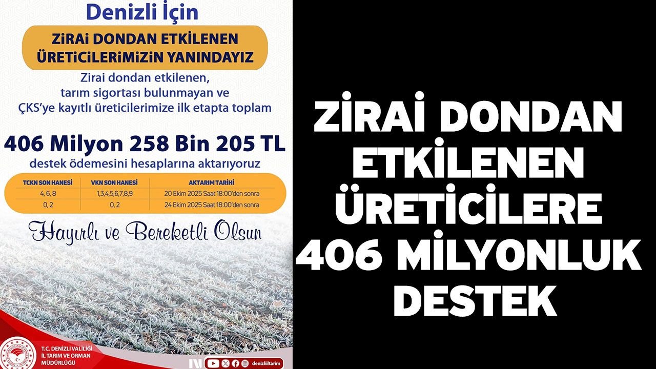 Denizli Haber - Denizli İl Tarım ve Orman Müdürlüğü tarafından yapılan açıklamada, "Denizli için zirai dondan etkilenen, tarım sigortası bulunmayan ve Çiftçi Kayıt Sistemine (ÇKS) kayıtlı üreticilere ilk etapta 406 milyon 258 bin 205 TL destek ödemesini hesaplarına aktarıyoruz" ifadeleri yer aldı. TC kimlik numarası son hanesi 4,6,8 vergi kimlik numarasının sonu 1,3,4,5,6,7,8,9 olanlar için 20 Ekim Pazartesi günü saat 18.00’den sonra aktarım yapılacağı ifade edildi. TC kimlik numarası ve vergi kimlik numarasının son hanesi 0 ve 2 olanlar için ise 24 Ekim Cuma günü saat 18.00’den sonra aktarım yapılacağı ifade edildi.