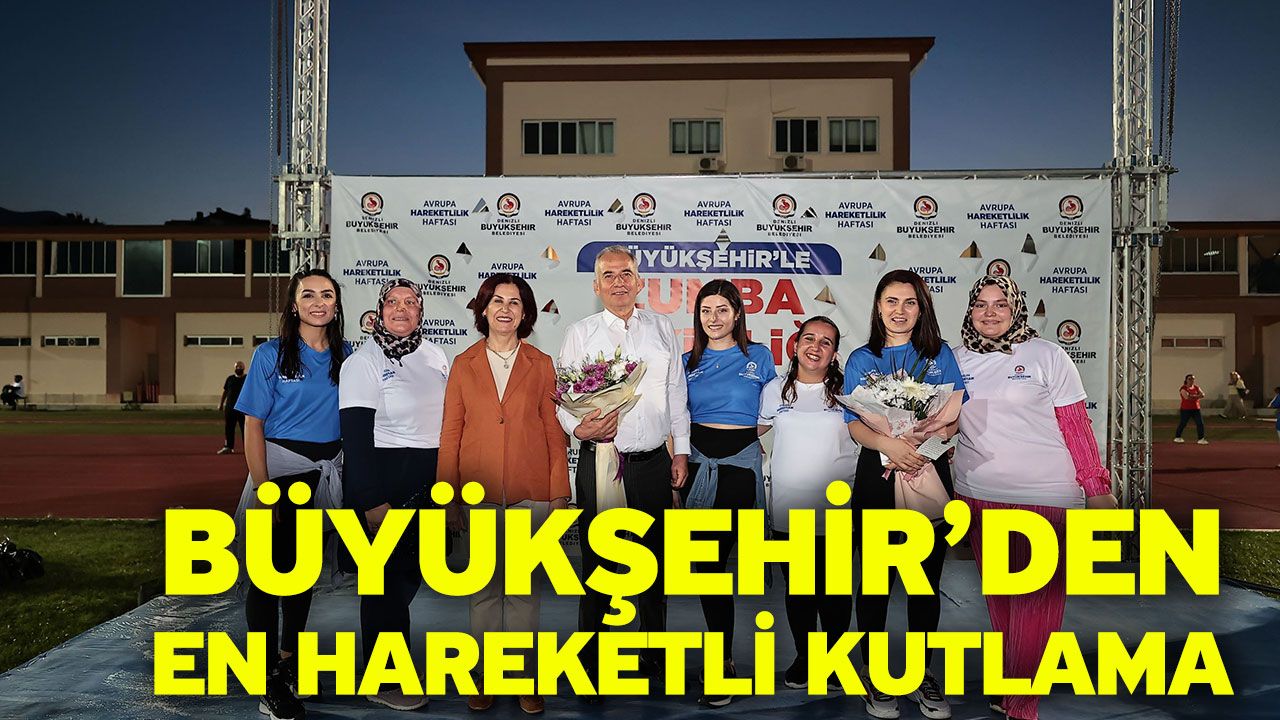 Denizli Haber - Denizli’de Avrupa Hareketlilik Haftası kutlamaları Denizli Büyükşehir Belediyesinin düzenlediği etkinliklerle dolu dolu yaşanıyor. Denizli Büyükşehir Belediyesi bu kapsamda ücretsiz zumba kursu verdiği kadınların katıldığı “Büyükşehir’le Zumba Etkinliği” adı altında bir program gerçekleştirdi. Denizli Büyükşehir Belediyesi Geleneksel Türk Spor Oyunları Kompleksi ve Atletizm Sahası’nda düzenlenen programa, Denizli Büyükşehir Belediye Başkanı Osman Zolan, eşi Berrin Zolan, Büyükşehir Belediyesi Genel Sekreter Yardımcısı Ömer Faruk Özer ile yaklaşık 500 kadın katıldı. Denizli Büyükşehir Belediyesi zumba eğitmenleri eşliğinde yüzlerce kadın hep birlikte hareketli şarkılar eşliğinde zumba yaptı. Renkli görüntülerin yaşandığı programda Başkan Zolan ve eşi Berrin Zolan, zaman zaman kadınların coşkusuna alkışla tempo tutarak eşlik etti.